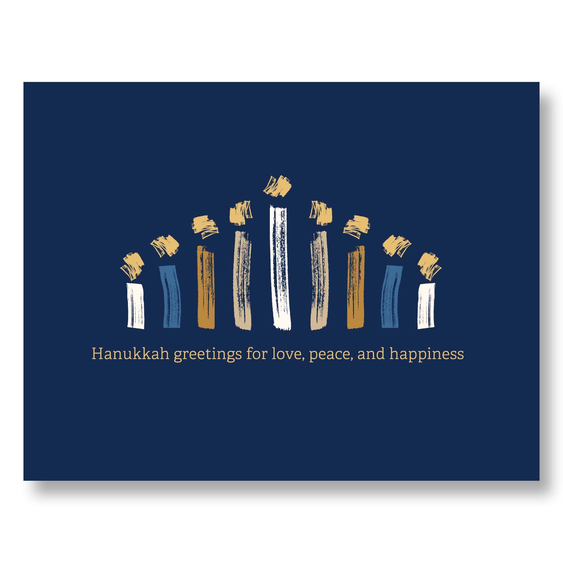 • Front: Deep navy background with brush‑stroke menorah motif and greeting text