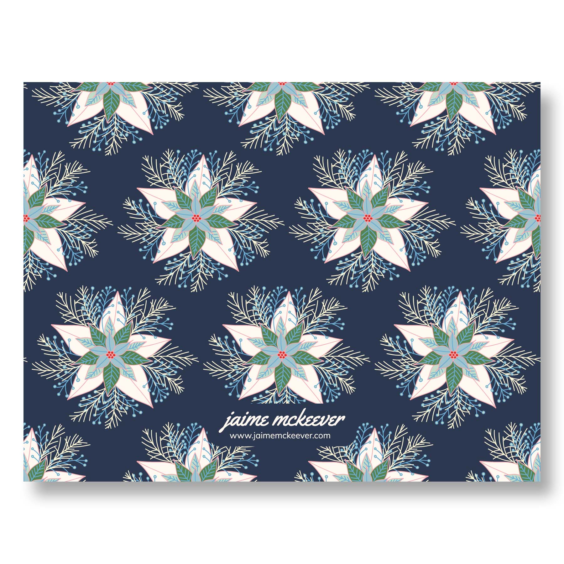 This design blends the traditional poinsettia holiday symbol with a contemporary aesthetic. It appeals to those who love florals but still want that holiday feel. Great for family, friends, seasonal correspondence, or as a refined gift.