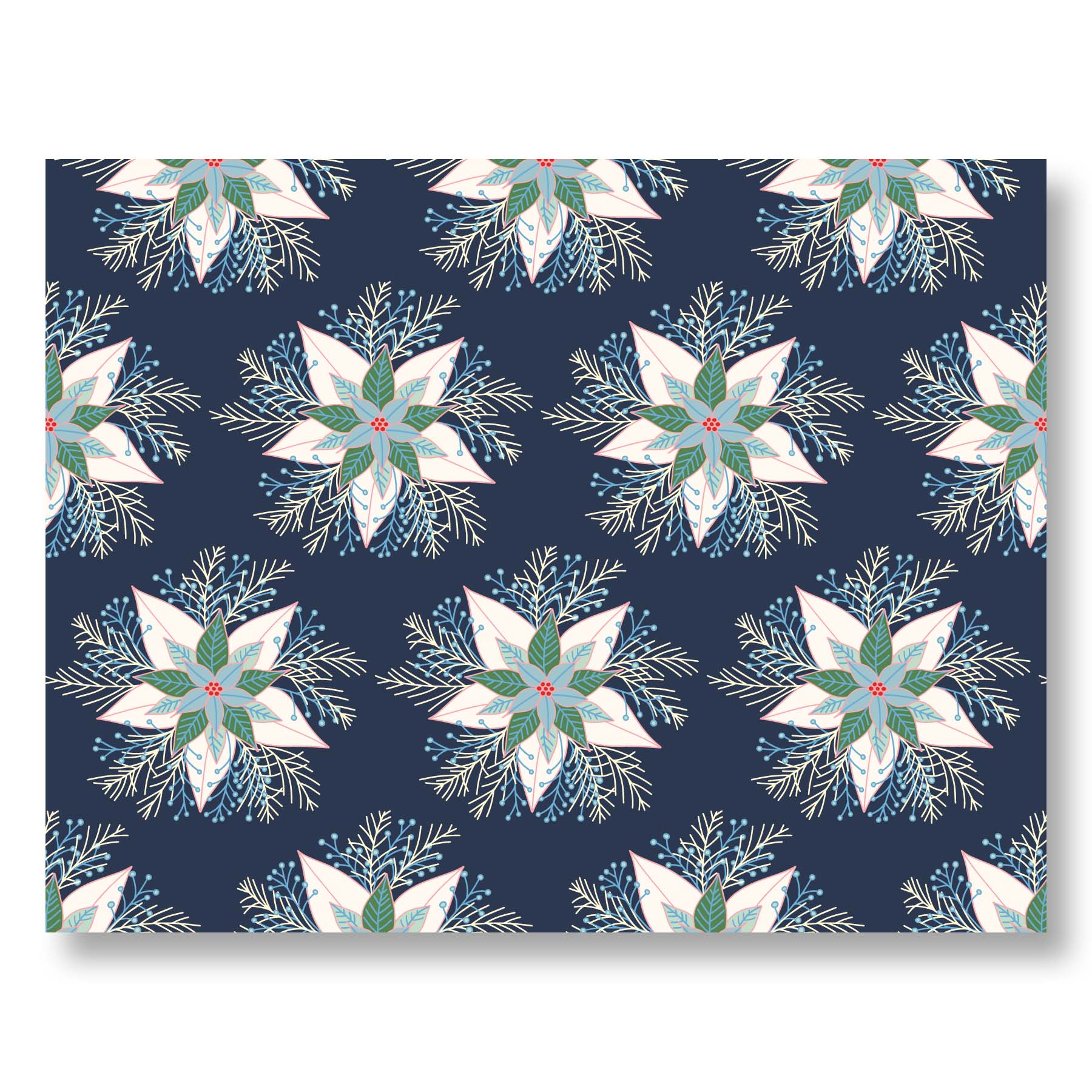 - Design: Elegant poinsettia floral motif accented with evergreen foliage and berries in seasonal colors